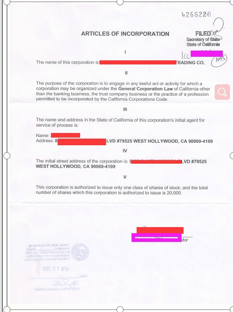 經(jīng)過(guò)1個(gè)月的溝通,10月2號(hào)李先生與鷹飛簽約加州公司注冊(cè)+使館認(rèn)證業(yè)務(wù),并于11月30號(hào)完成注冊(cè)和認(rèn)證業(yè)務(wù)。以下是李先生加州公司注冊(cè)成功的證書: