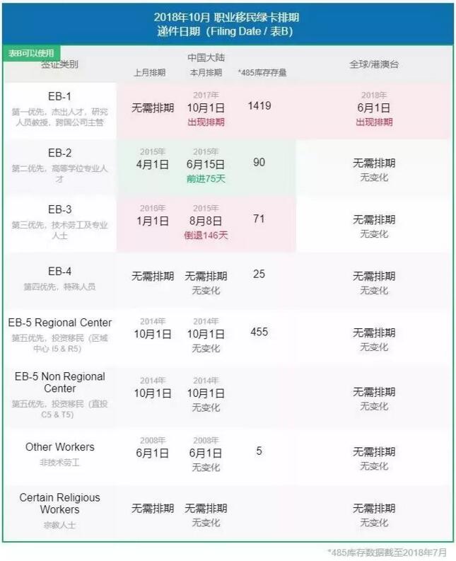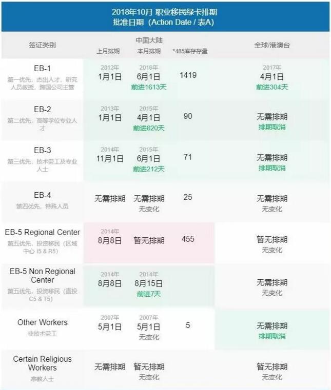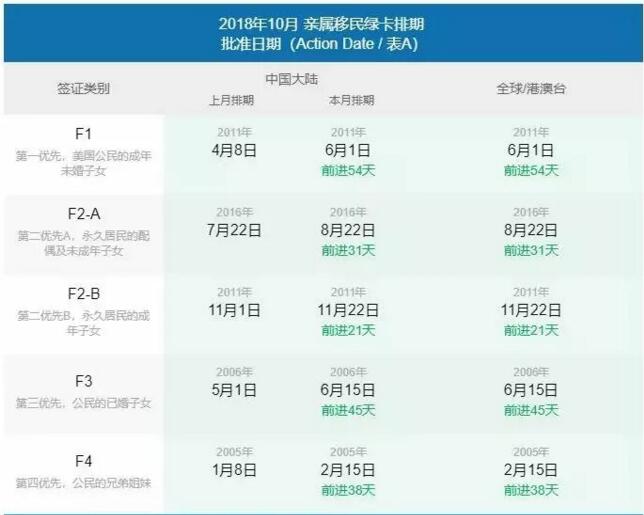 2018年10月綠卡排期表出爐,有人歡喜有人憂