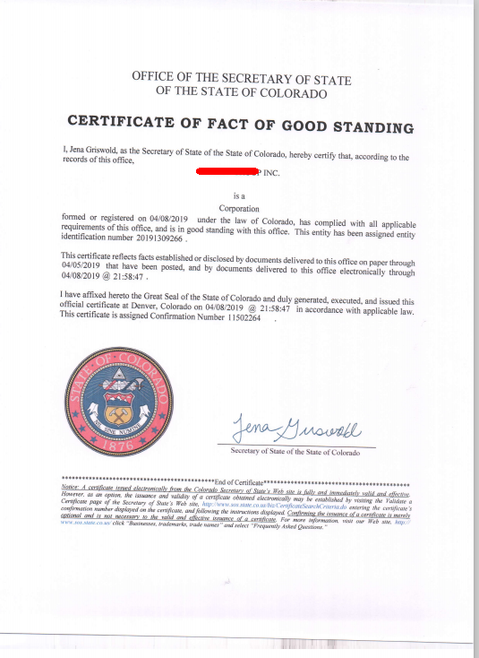 鄭總美國科州公司注冊成功回執