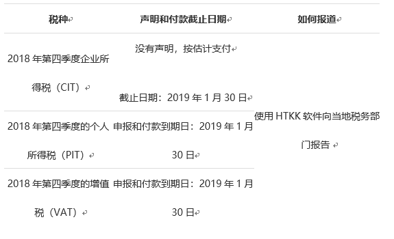 越南公司還需要繳納年度營業執照稅,截止日期為1月30日。